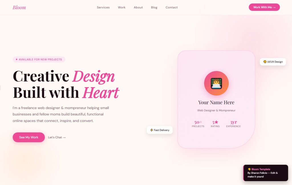 Sharon offers web design, front-end development, digital products, and creative services for small businesses and moms.